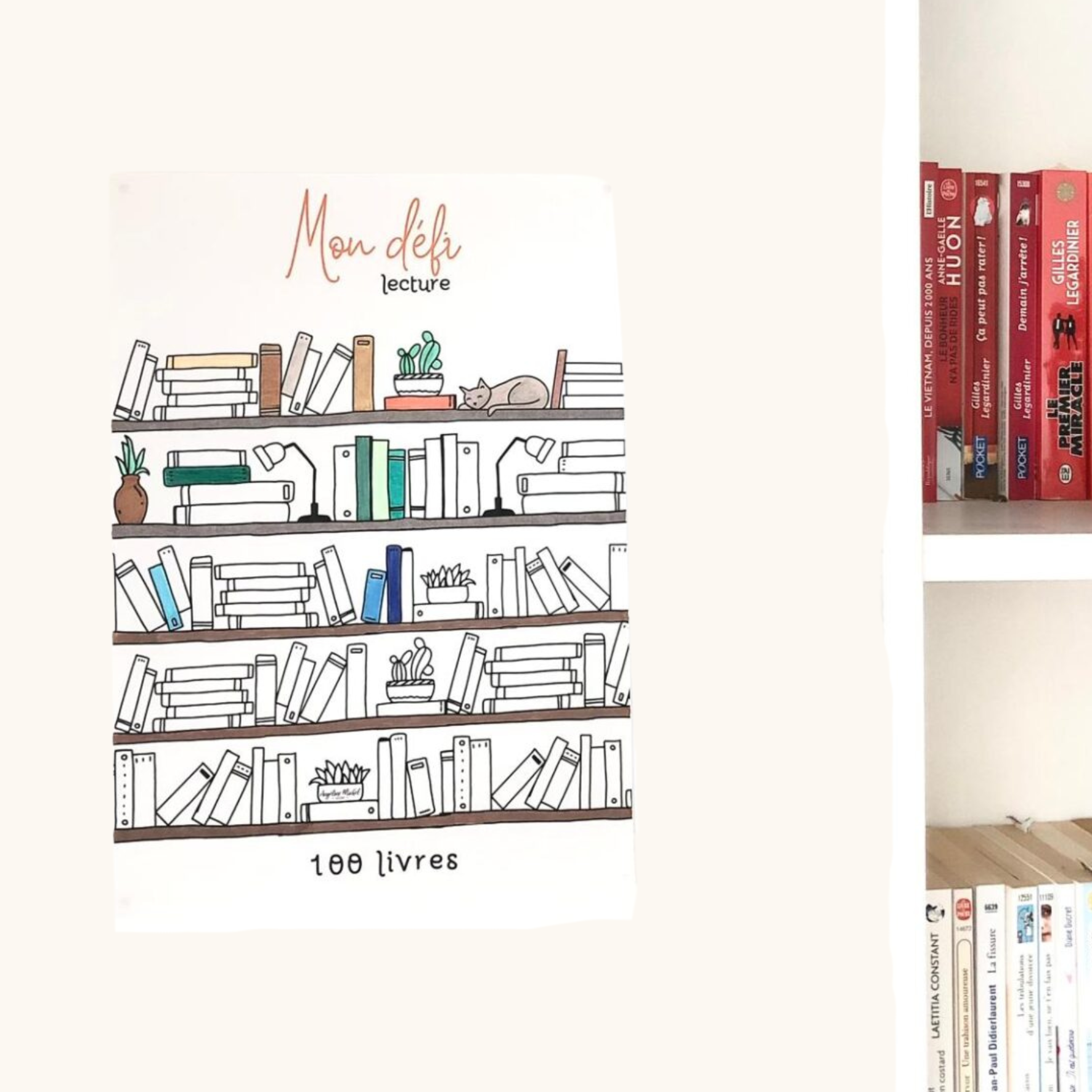Ce poster, je l’adore ! Il orne les murs de ma bibliothèque et c’est avec beaucoup de satisfaction que je viens en colorier un ouvrage après chaque fin de lecture ! J’aime beaucoup respecter les couleurs des couvertures originales donc l’affiche est vraiment à l’effigie de ma bibliothèque.